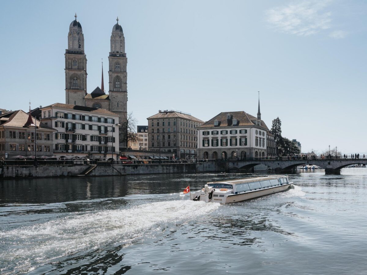 Mit dem Limmatboot treibt man gemütlich an den schönsten Sehenswürdigkeiten der Zürcher Altstadt vorbei, bis sich der Blick auf den Zürichsee öffnet.