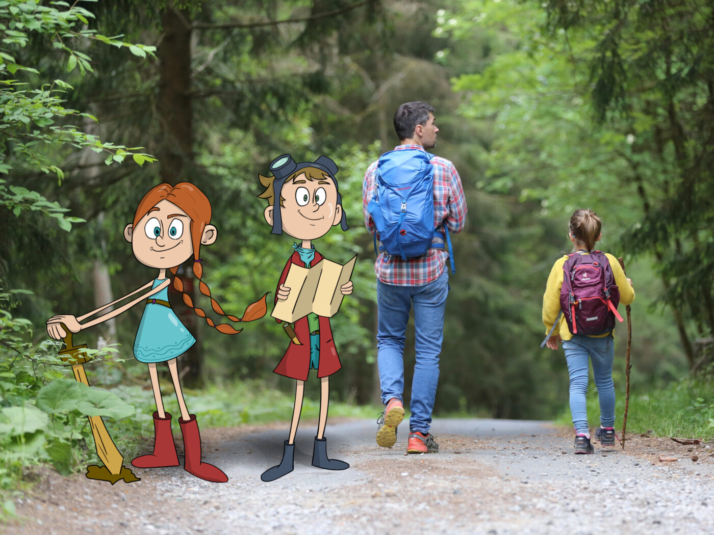 Links, rechts oder gerade aus? Auf den Abenteuerwegen von Winnie und Tack entscheiden kleine Entdecker:innen selbst, in welche Richtung es gehen soll.