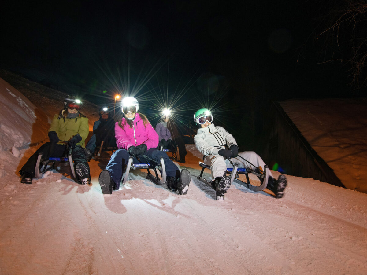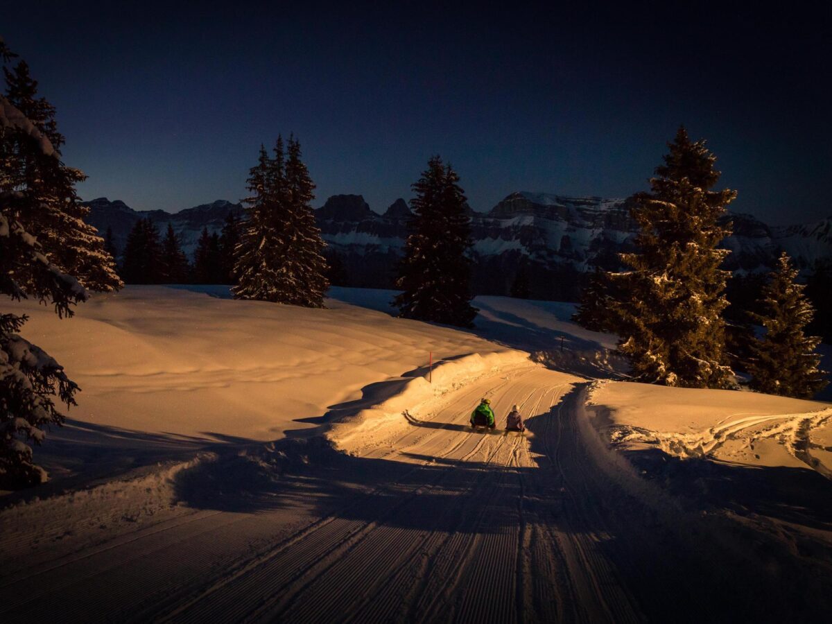 Wenn der Mond die Bergspitzen erhellt, ist Skifahren und Schlitteln angesagt! Ein Riesenspass für die ganze Familie mit diversen Restaurants entlang der Bahnen.