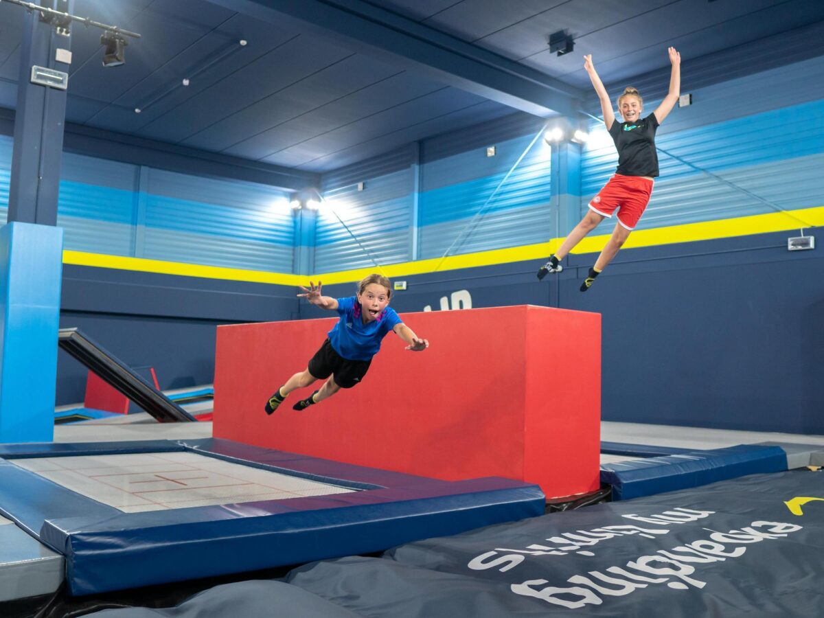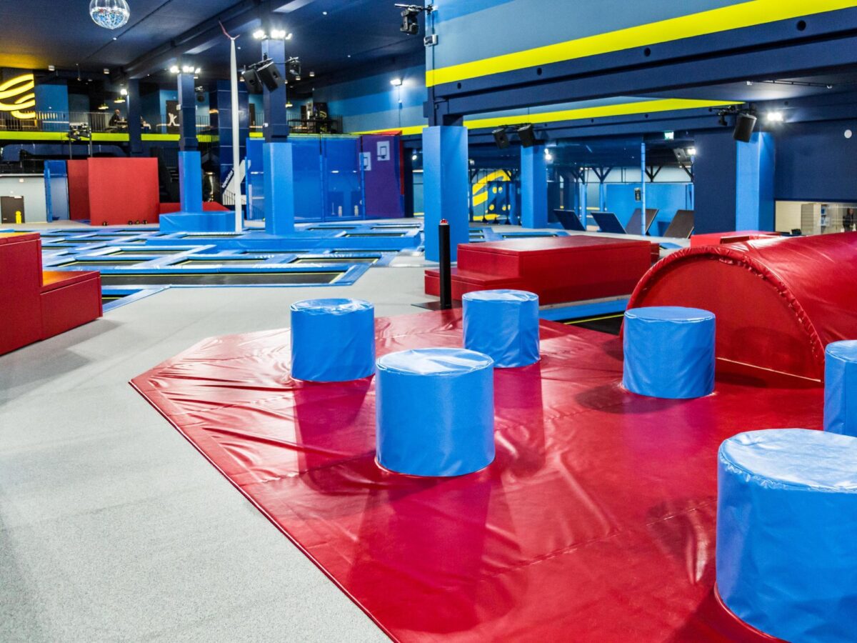 And for those who still have not had enough after an intensive trampolining session, there is another sports area with slacklines, a fitness course, basketball trampolining, and dodgeball.